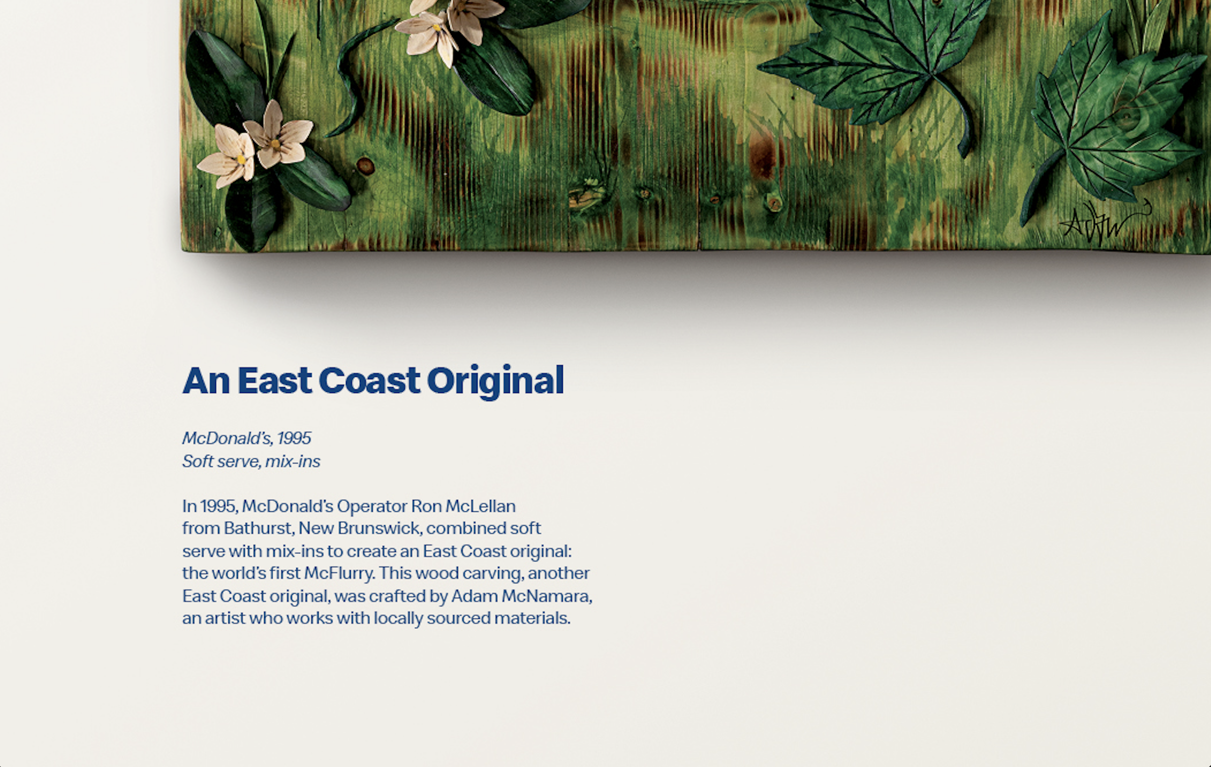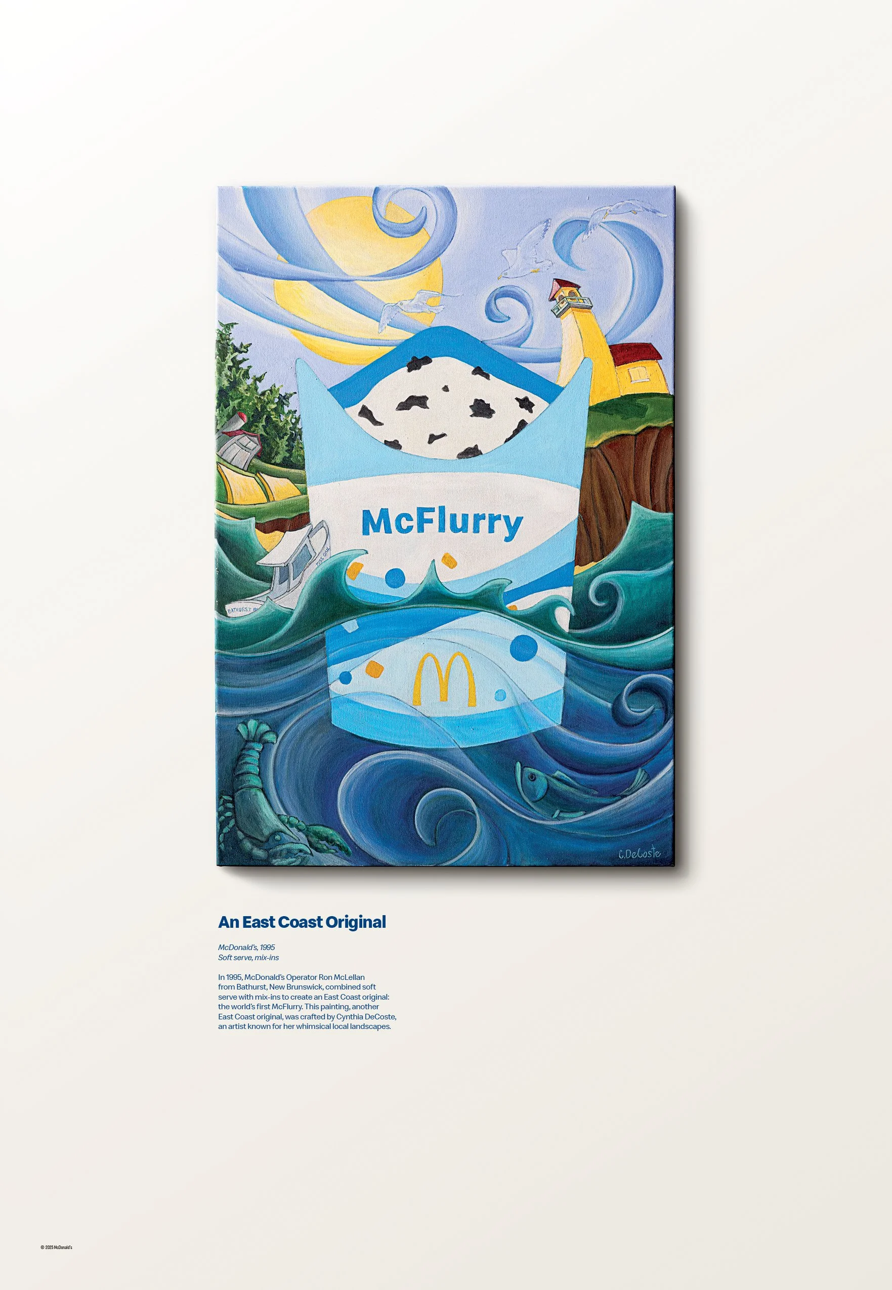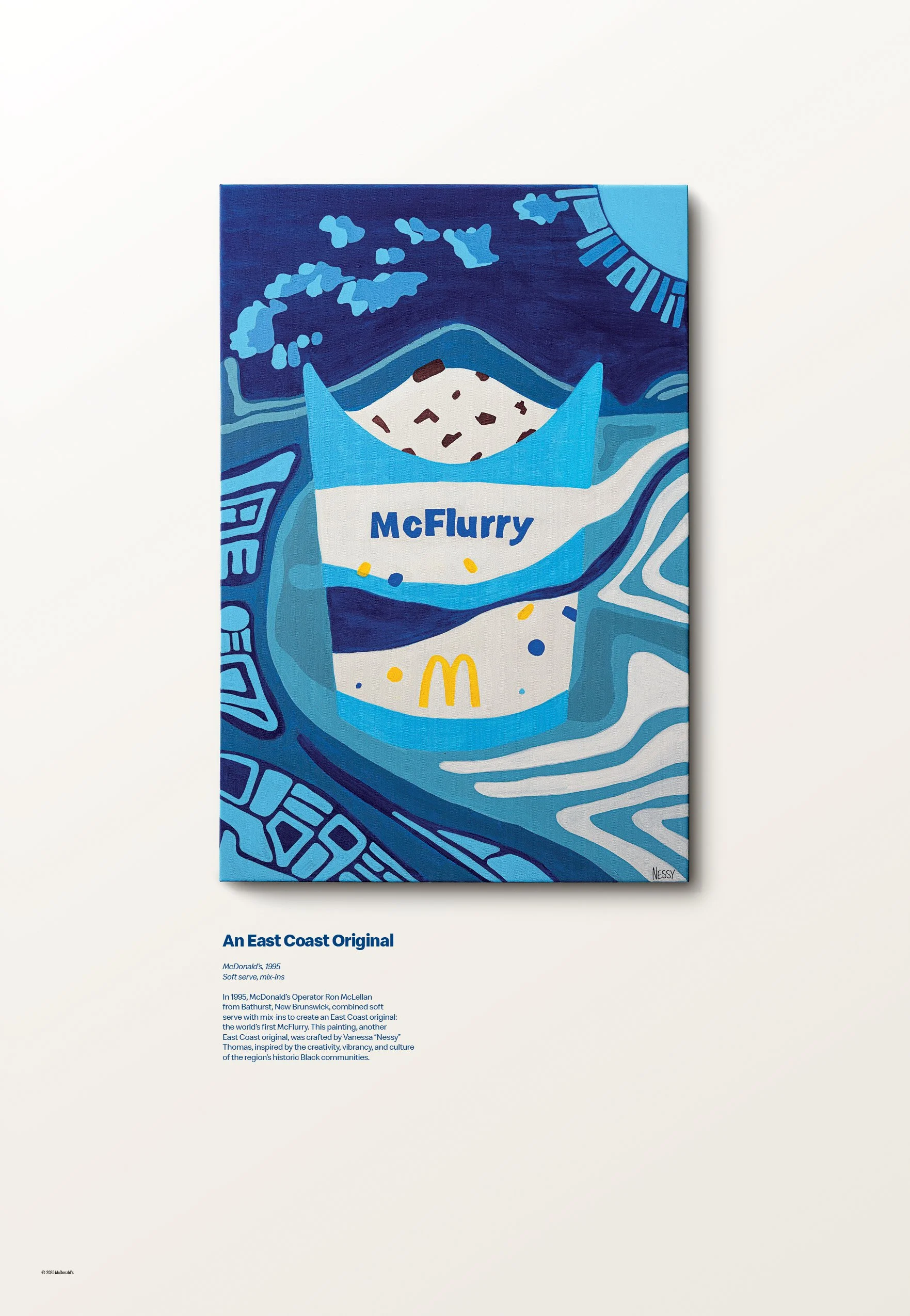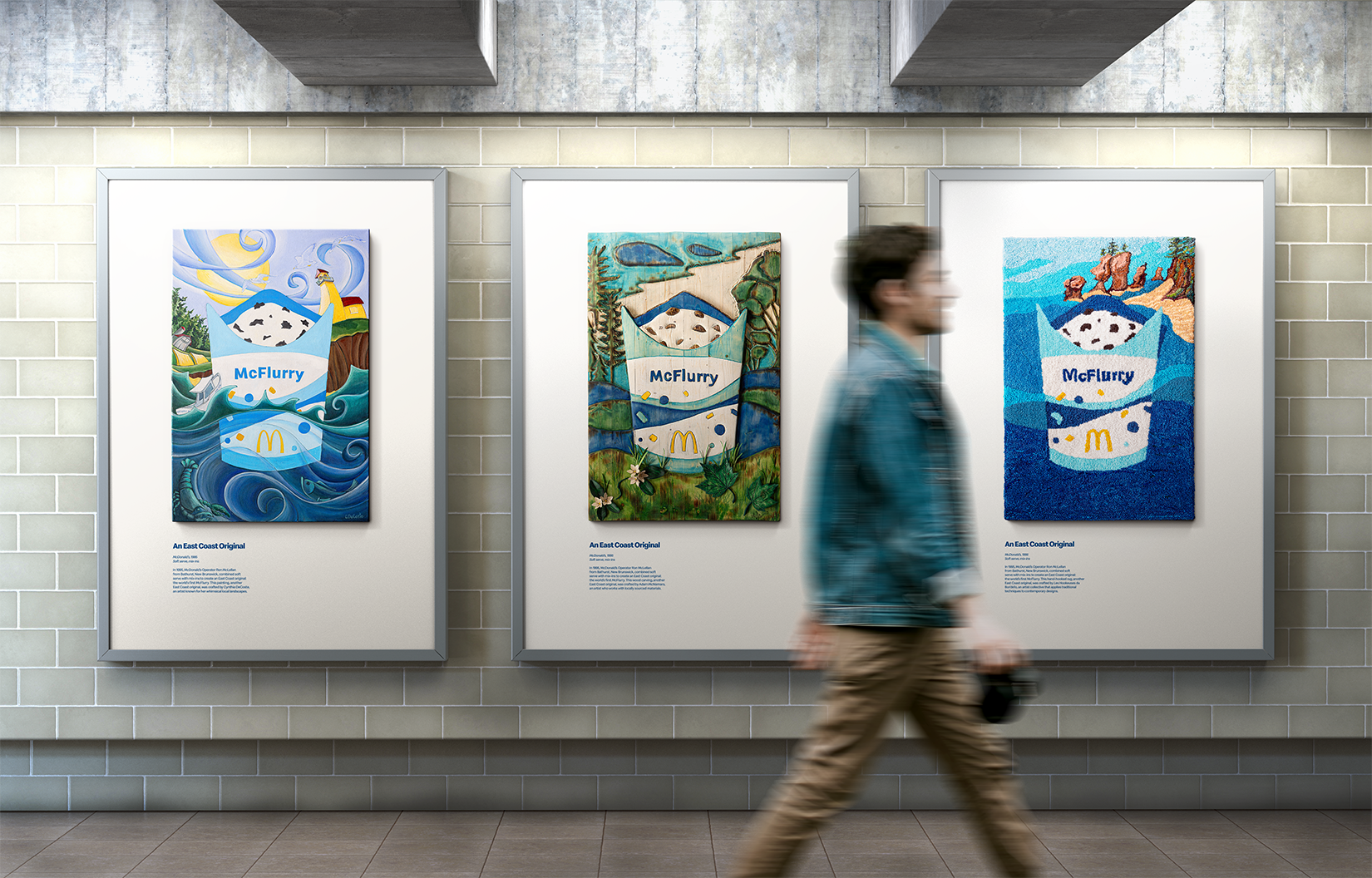The McFlurry is an East Coast Original. Back in 1995, New Brunswick restaurant owner Ron McLellan hand-crafted the very first McFlurry by adding Oreo to soft serve. Since then its become a global phenomenon. To honour it’s landmark 30th anniversary and it’s East Coast origins, we tapped back into into the creative spirit of East Coasters. We asked them to hand-craft a celebratory ad campaign using only mediums and styles specific to the local area. The end result? Our media placements became gallery exhibits, showcasing the inventive, artistic nature of Atlantic Canada.